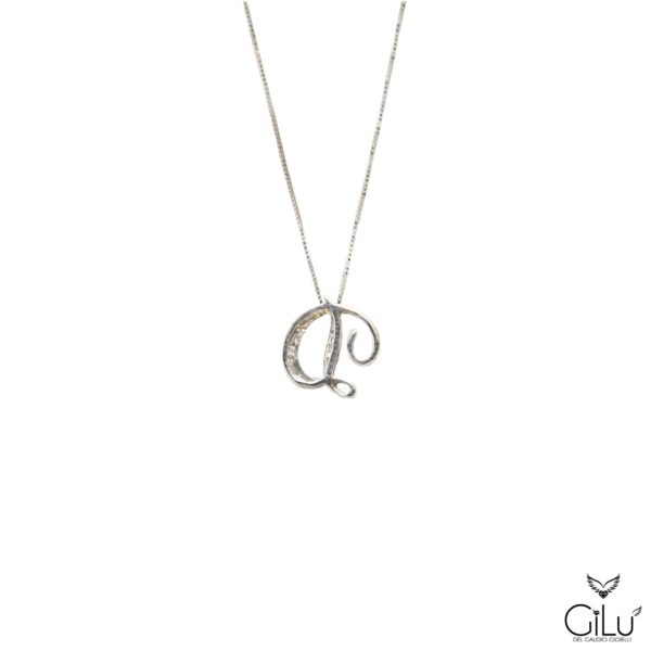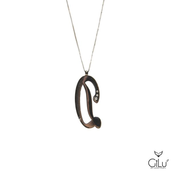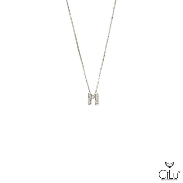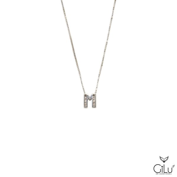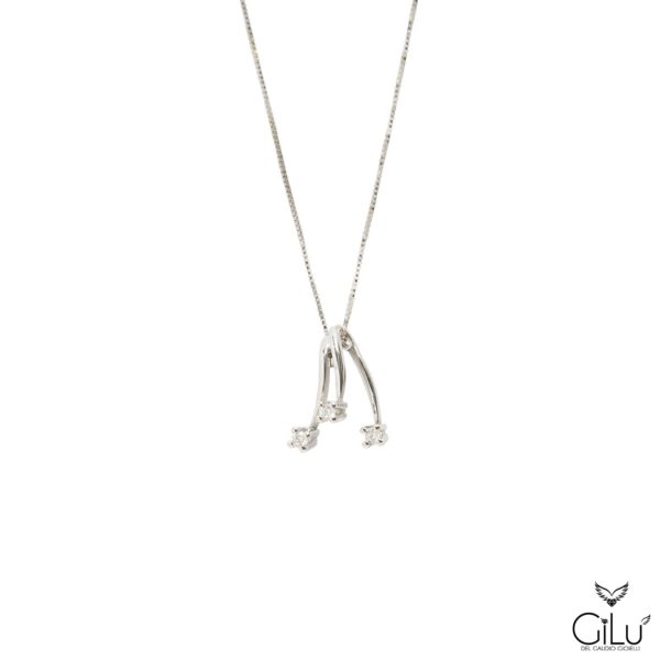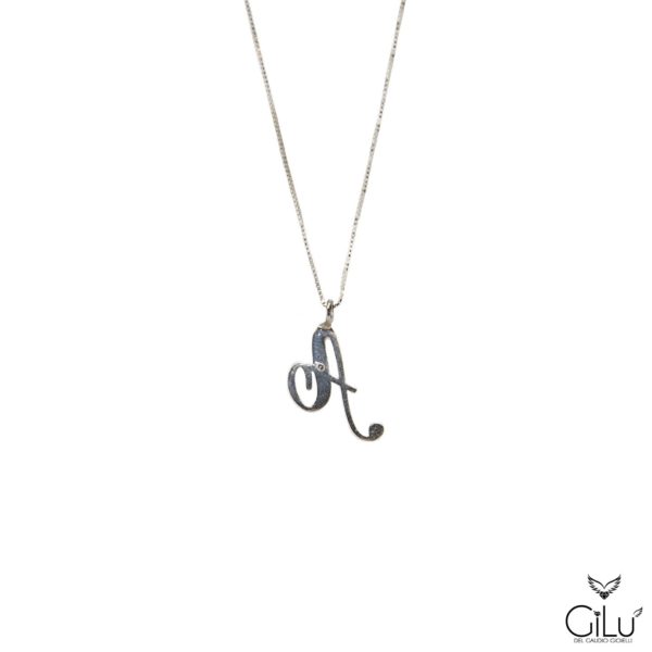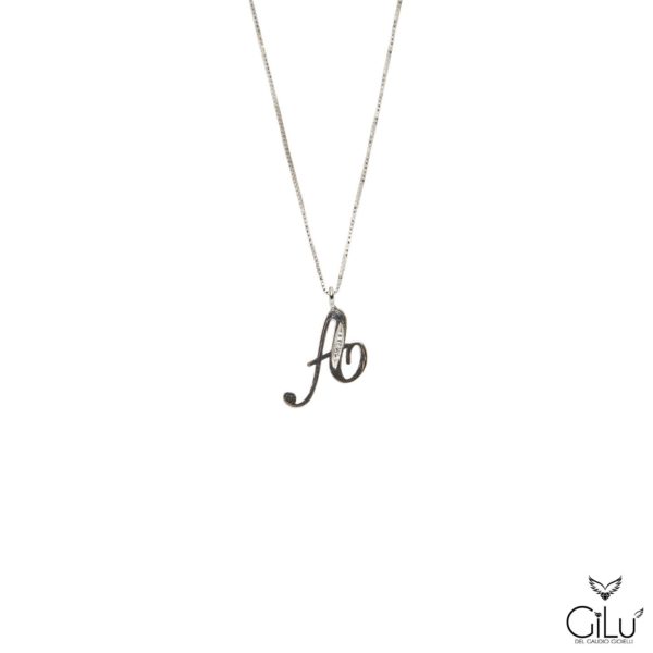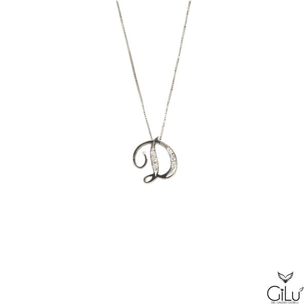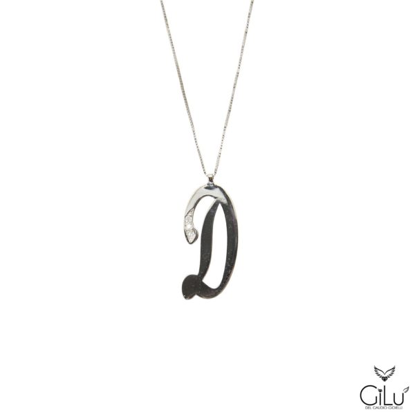 Pendente,  con  lettera,  in oro bianco con brillanti.  Altezza  lettera  1,50 cm.  Lunghezza  45 cm