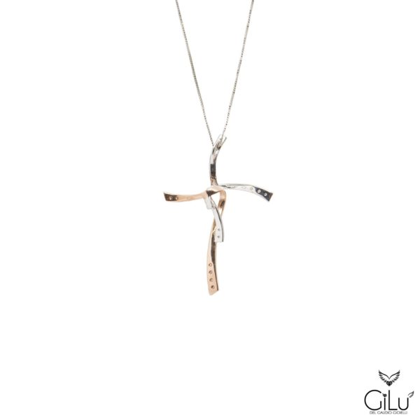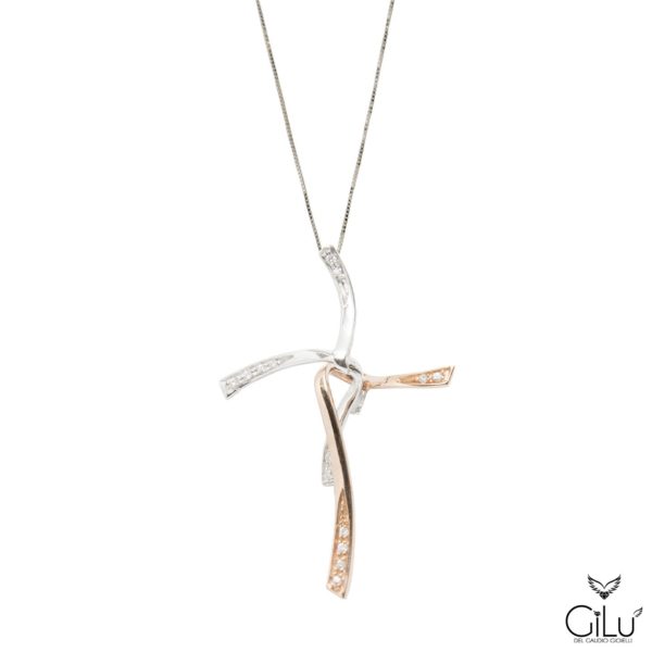 Pendente in oro bianco e oro rosa con brillanti.  Lunghezza  45 cm