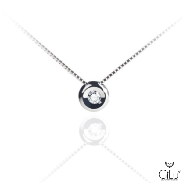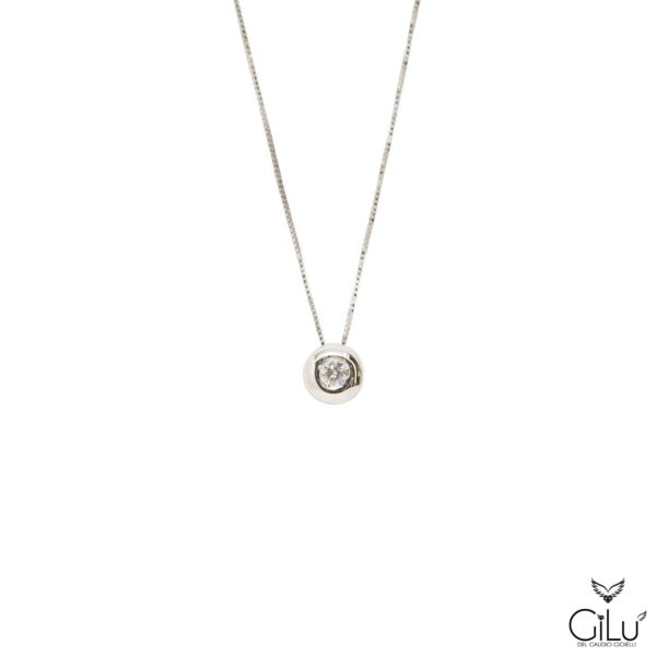 Collana  punto luce, tornito,  in oro bianco con brillanti.  Lunghezza  45 cm