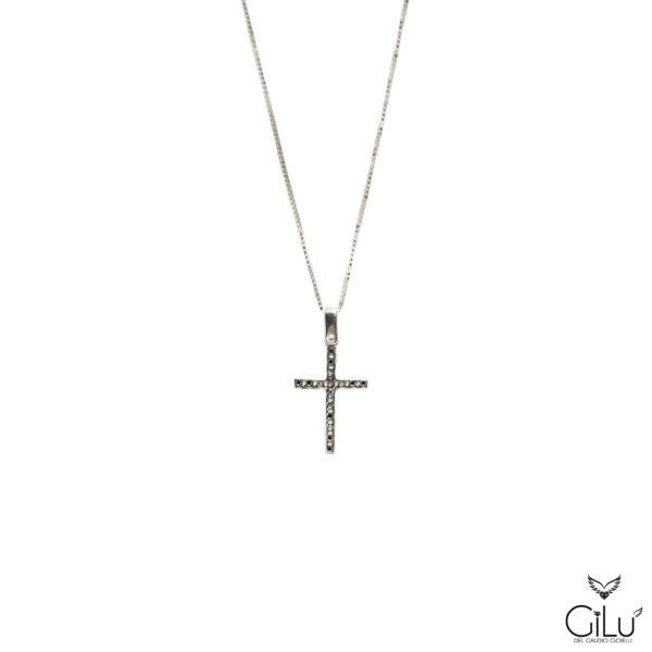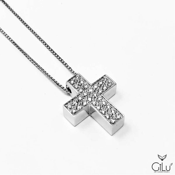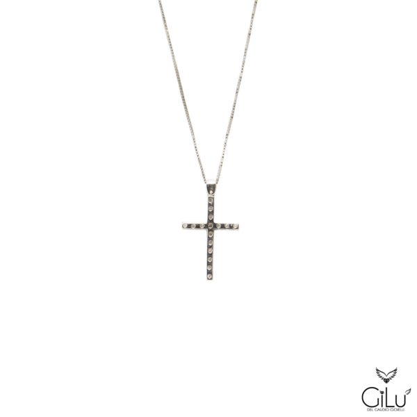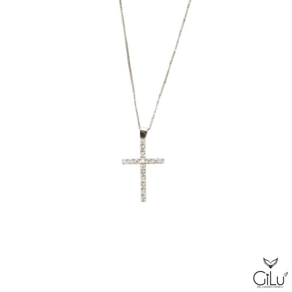 Pendente in oro bianco con brillanti.  Lunghezza  45 cm.  Linea Uomo