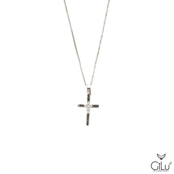 Pendente in oro bianco con  brillanti e brillanti neri.  Lunghezza  45 cm