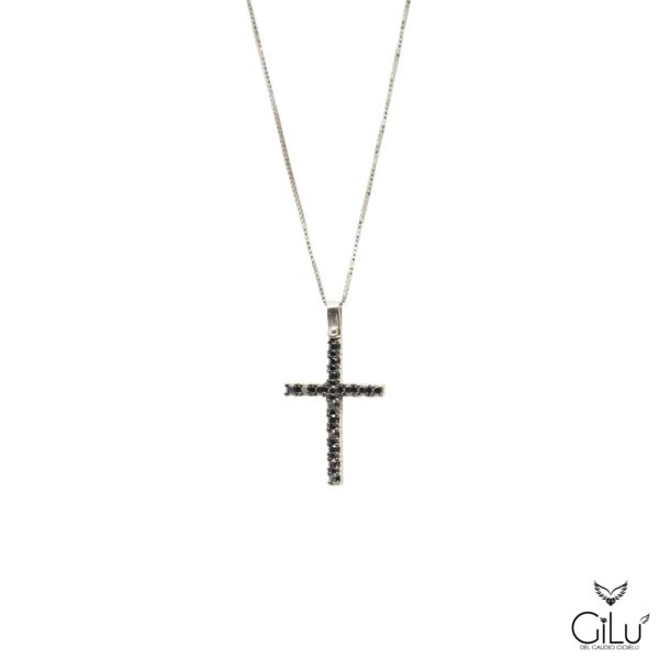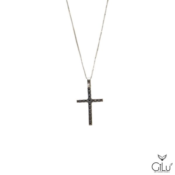 Pendente in oro bianco con brillanti neri.  Lunghezza  45 cm.  Linea Uomo