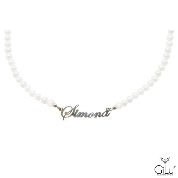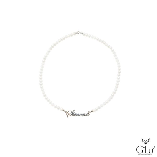 Collana  di perle  con  nome e chiusura  in  argento.  Lunghezza  43 cm
