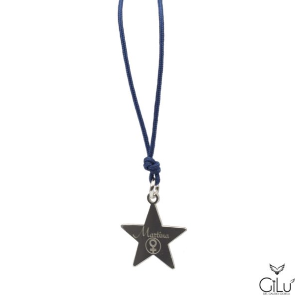 Collana  regolabile  in  filo cerato  regolabile  con  pendente  in  argento  più  incisione personalizzata.  Lunghezza  45-50 cm