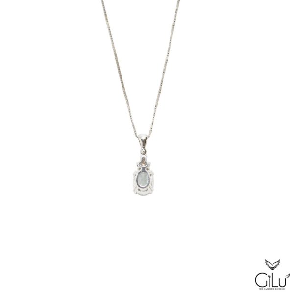 Pendente in oro bianco con  brillanti e acquamarina.  Lunghezza  45 cm